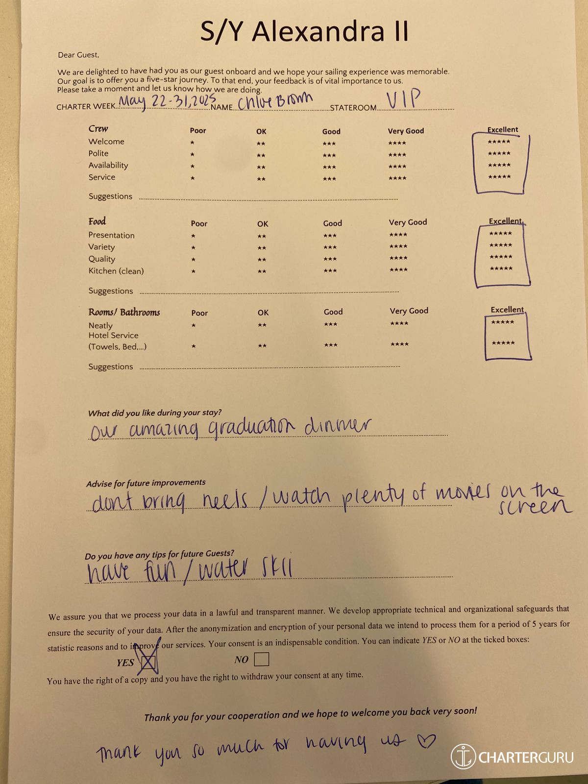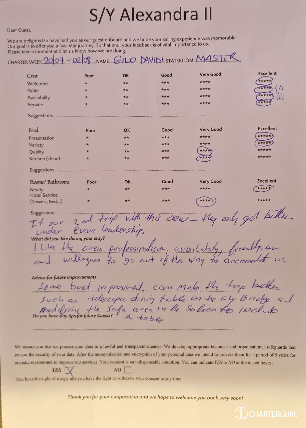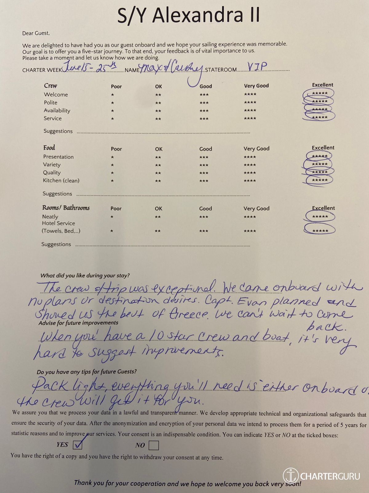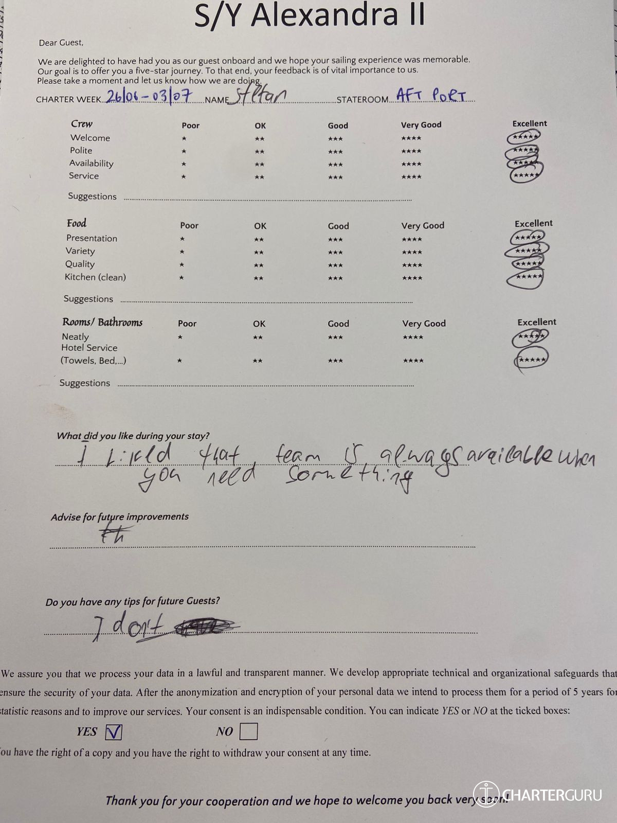 Fluent in both Greek and English, Alexandros excels in effective communication, elevating the overall dining experience for a diverse array of guests. His culinary prowess, coupled with his passion for crafting memorable meals, positions him as an invaluable asset to any yachting journey..
