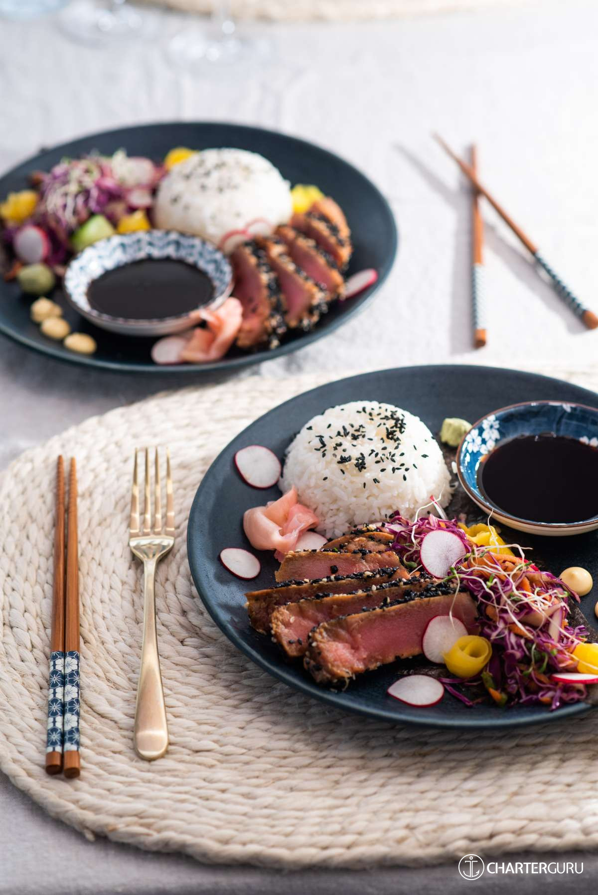 Fresh tuna | Cabbage| Sushi rice | Mango salsa | Pickled Ginger | Chili mayo