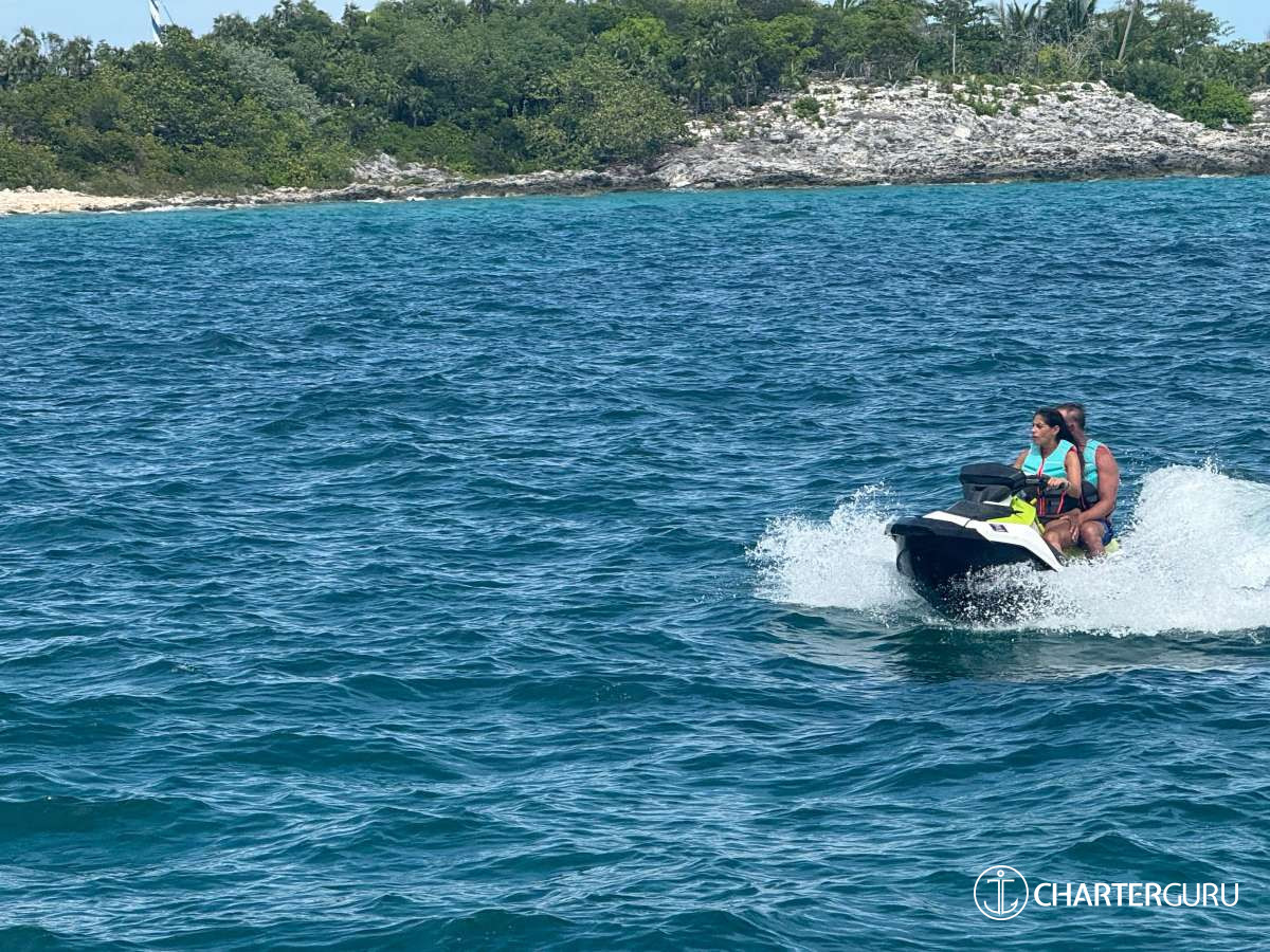 Captain John, Captain Mike, and Captain Dave were absolutely incredible—attentive, professional, and extremely knowledgeable. My husband and I asked for a relaxing day filled with jet skiing, paddleboarding, snorkeling, and swimming, and they delivered exactly that and more.