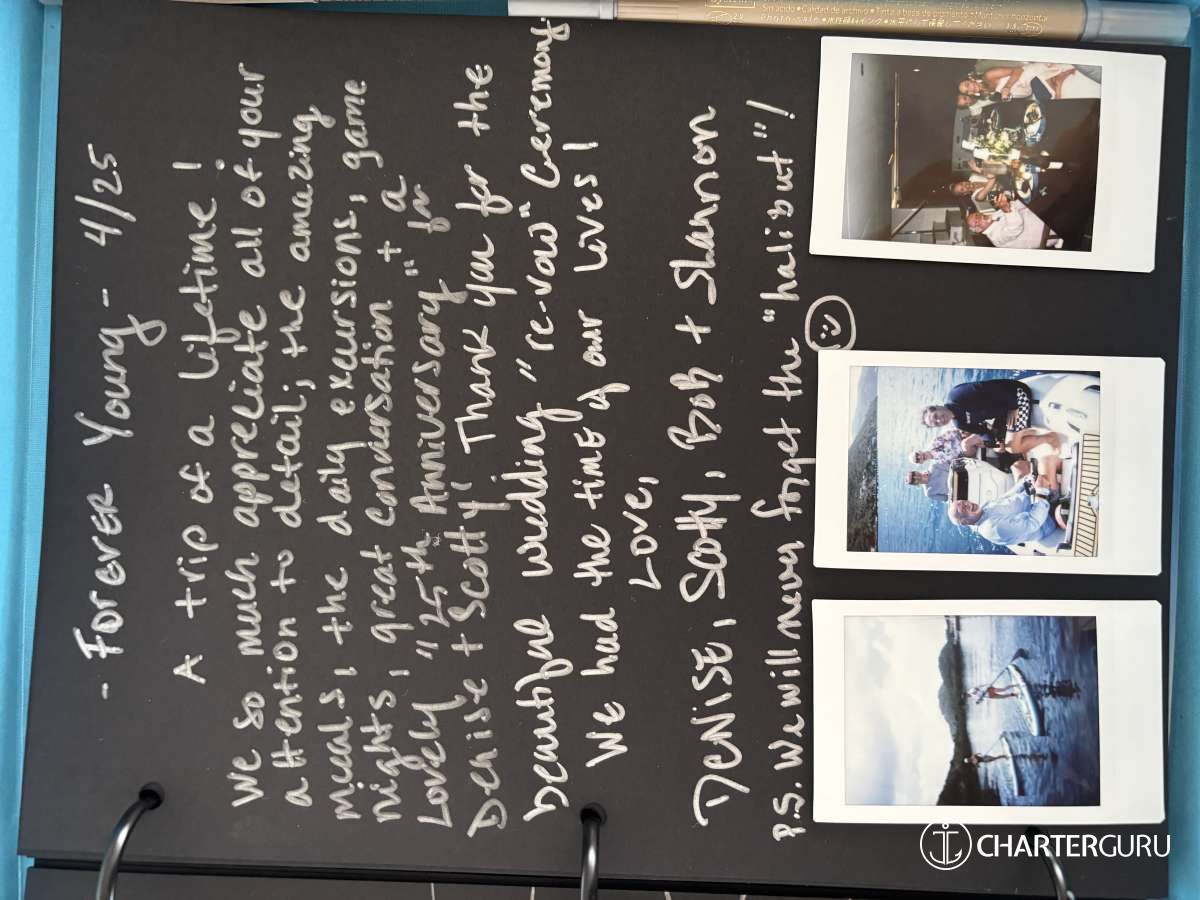 fun. I can't imagine sailing with anyone else. Thanks for everything!!” - Robbins family