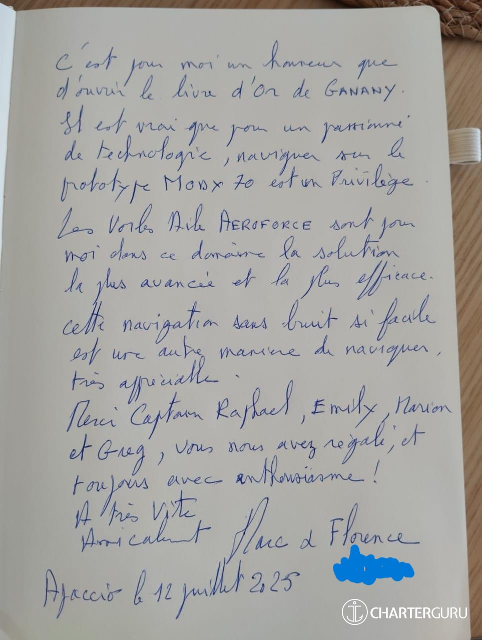 I look forward to seeing you in the Mediterranean aboard GANANY, a luxurious catamaran that respects the environment.