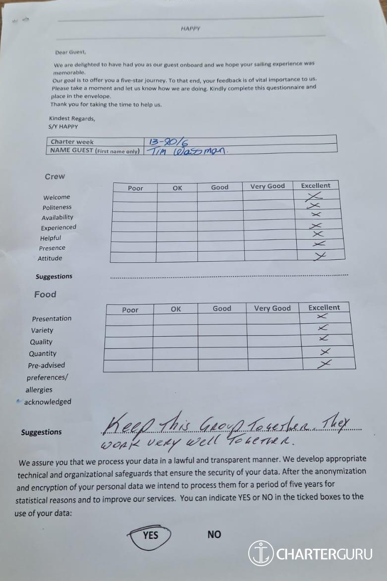 The weak spent cruising the Cyclades with George , Dimitris and Dimitris, looked after us with such care and attention, has made this one of the most enjoyable vacations ever! Our heartfeet appreciation.