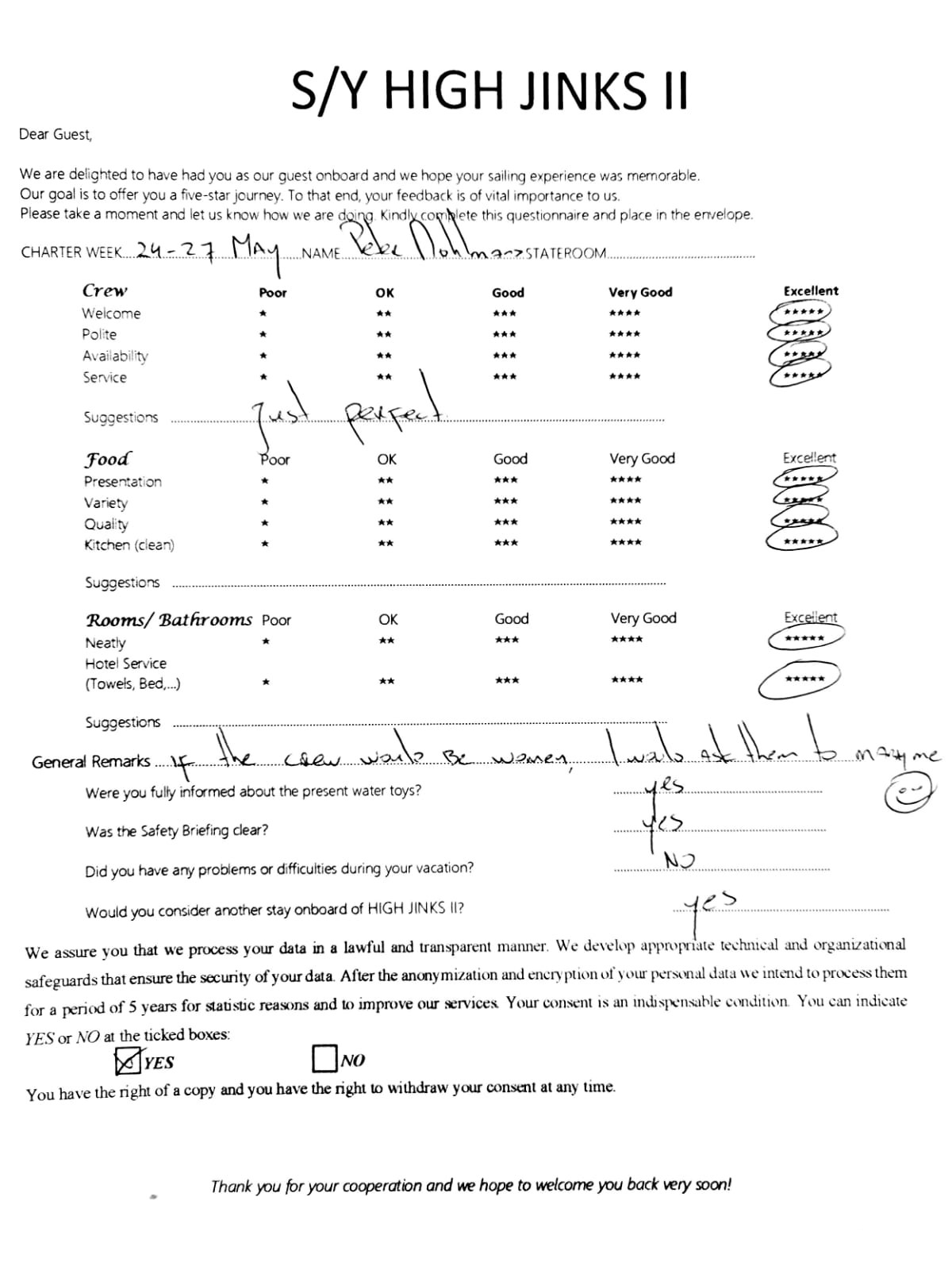 Nasia is a highly skilled and dedicated Deckhand-Hostess aboard the High Five catamaran, with extensive experience in the maritime hospitality industry. She has worked with various prestigious yacht charter companies, where she gained valuable expertise in both guest services and deck operations.