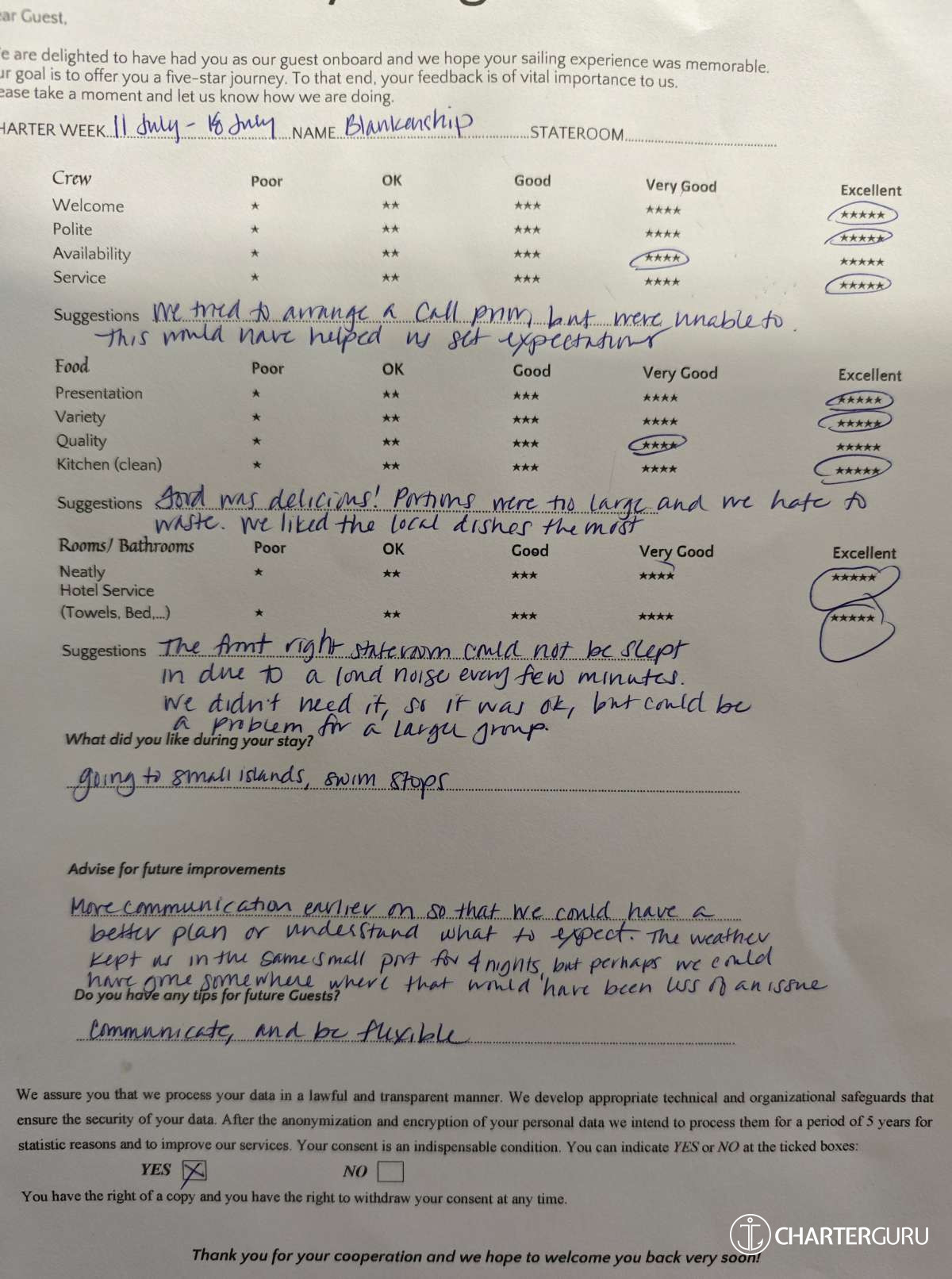 It was a wonderful experience on this amazing boat! Thak you so much for the perfect sailing, delicious food and excellent service and hospitality! We will treasure the memories of this past week for the rest of our life!