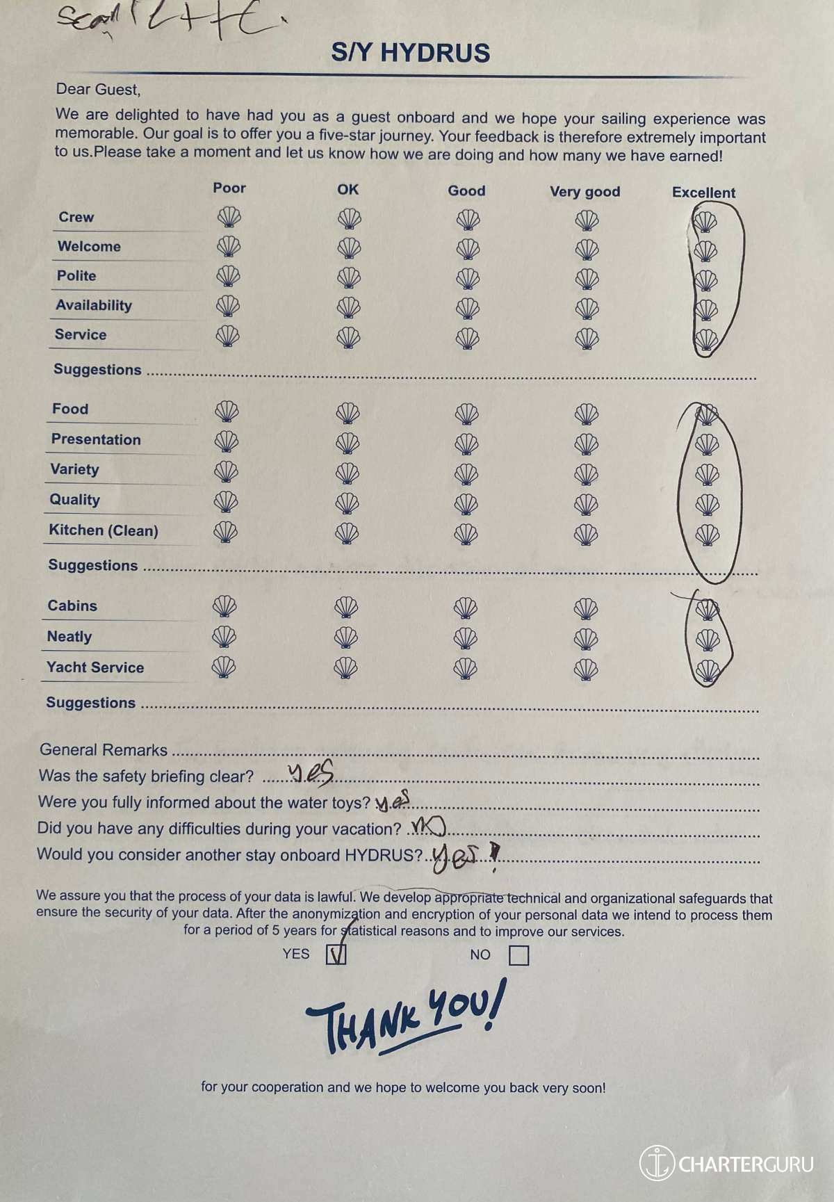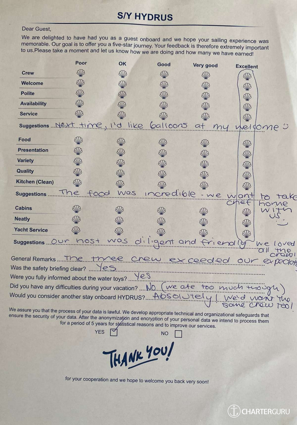 All additional/variable expenses such as Gas and Food are deducted from an Advance Provisioning Allowance (APA) - an additional deposit that is added on top of the charter price.