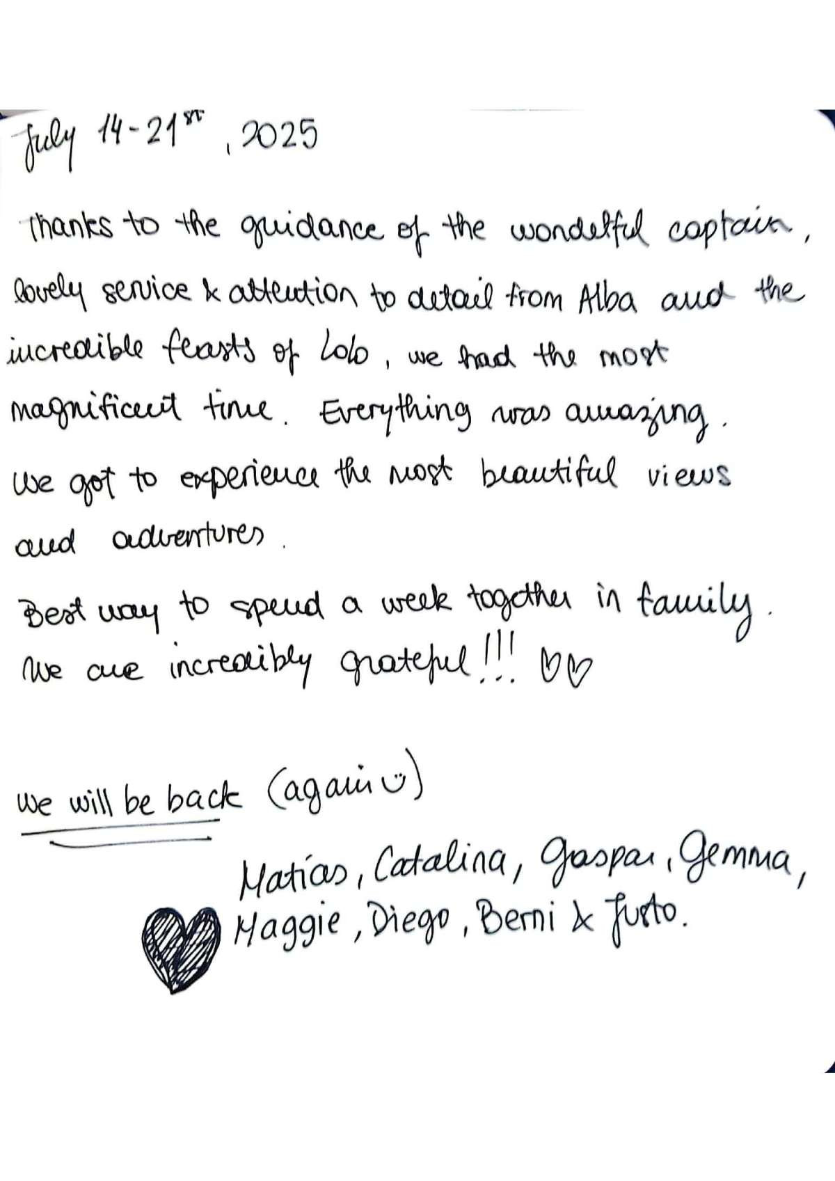 Thank you so very much for a very wonderful week aboard Looma yacht!