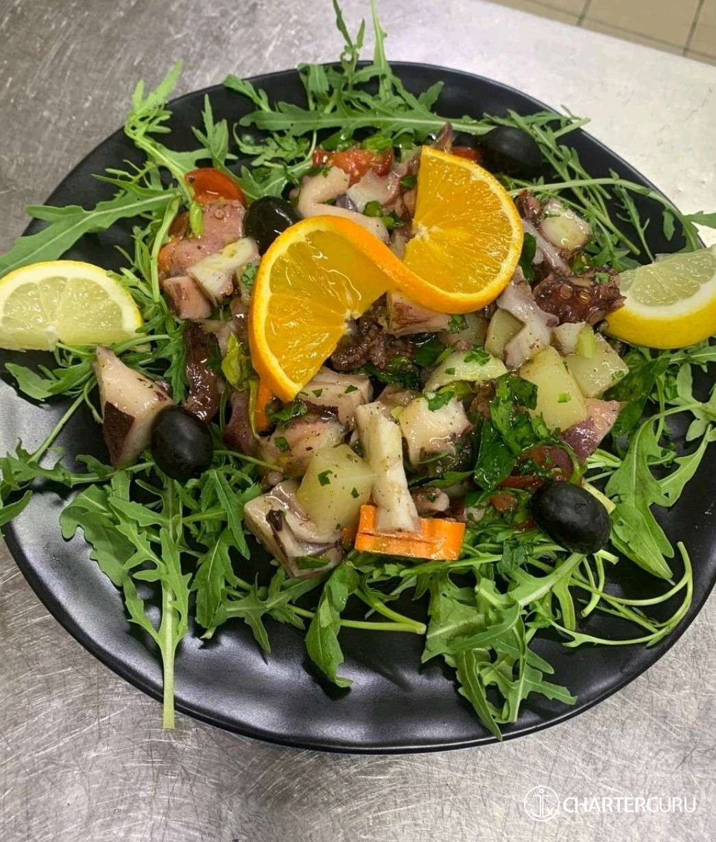 Guests aboard Lucky Clover can expect a warm, welcoming presence in the galley and a dining experience filled with heart, skill, and global flavours.