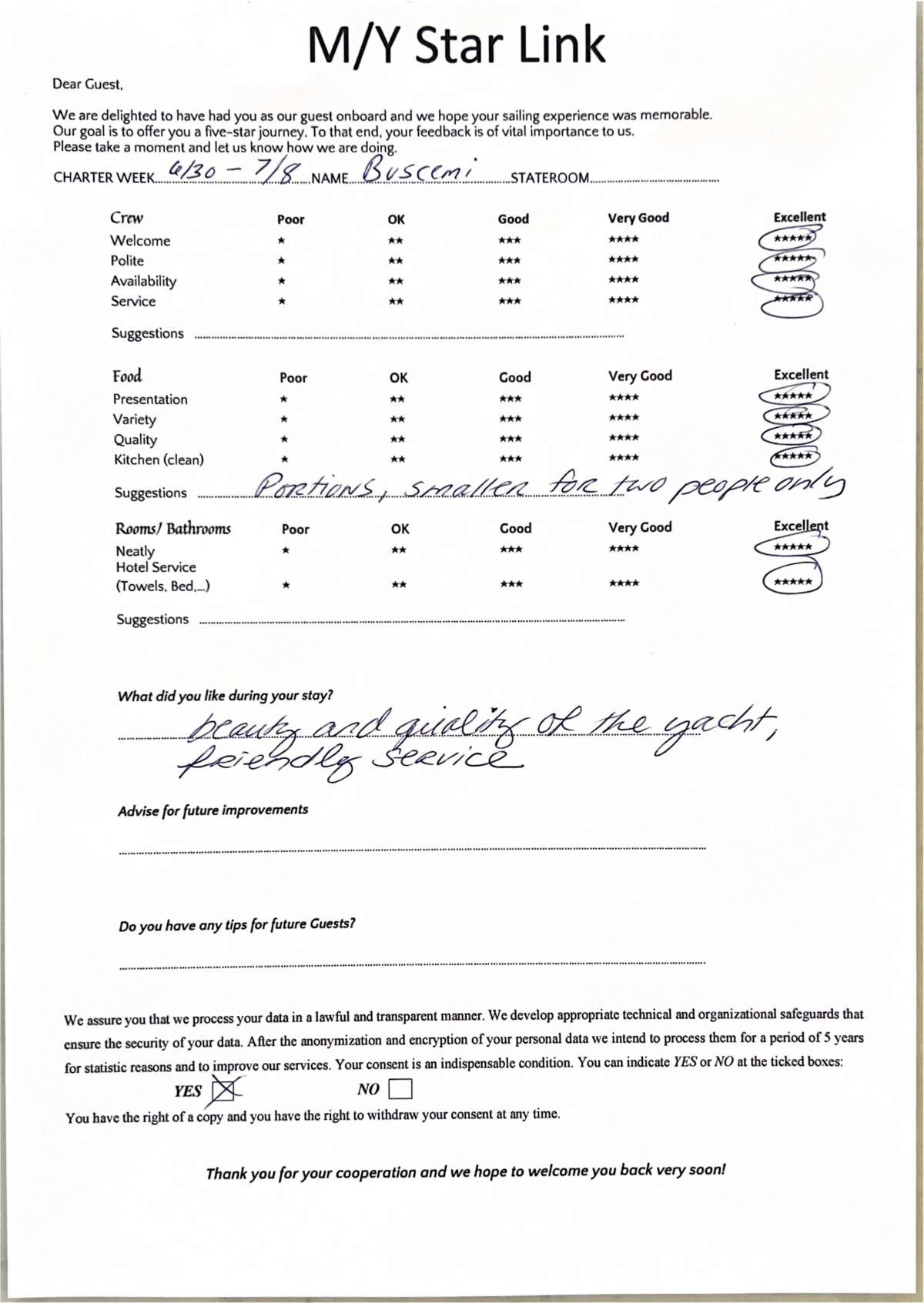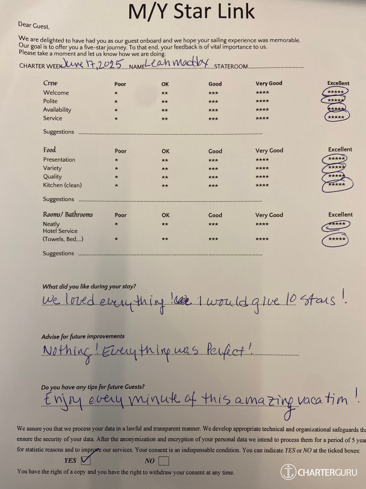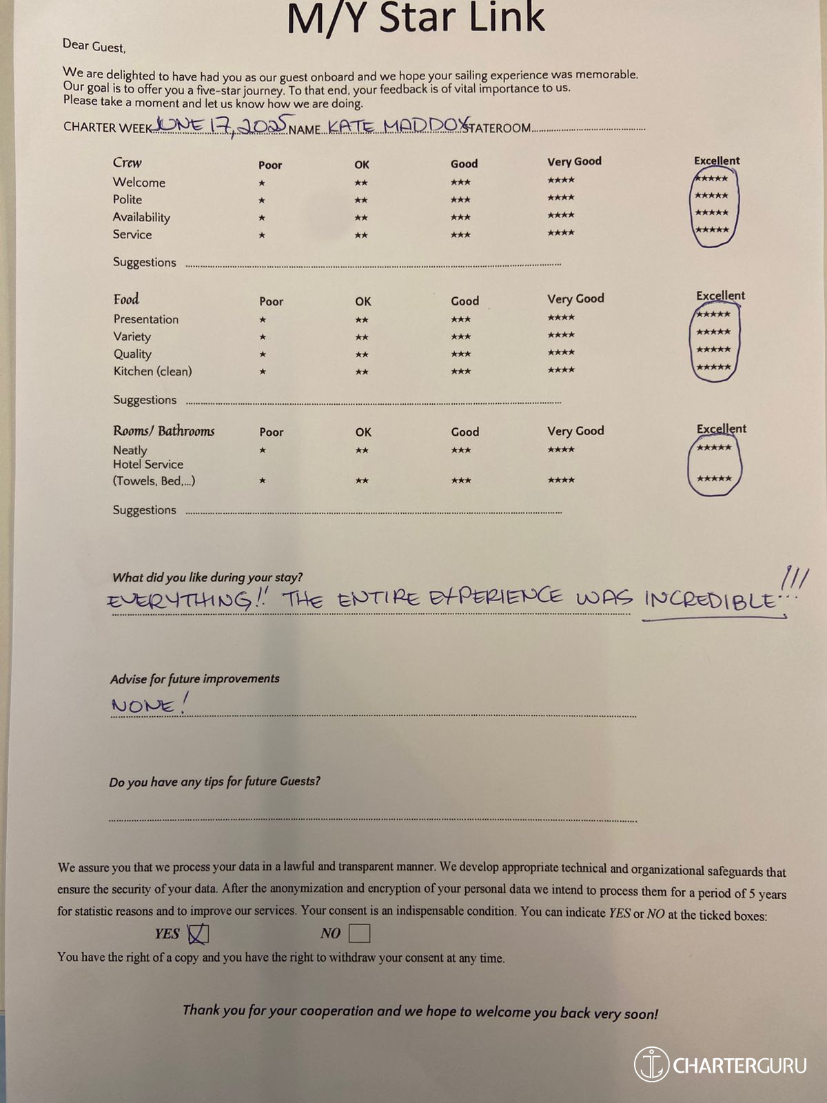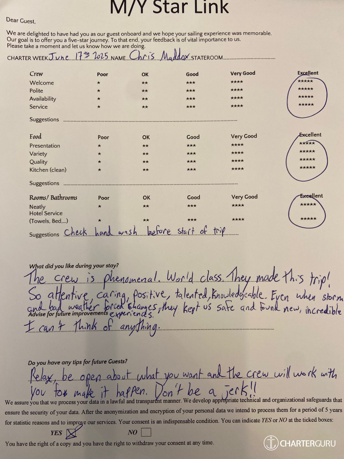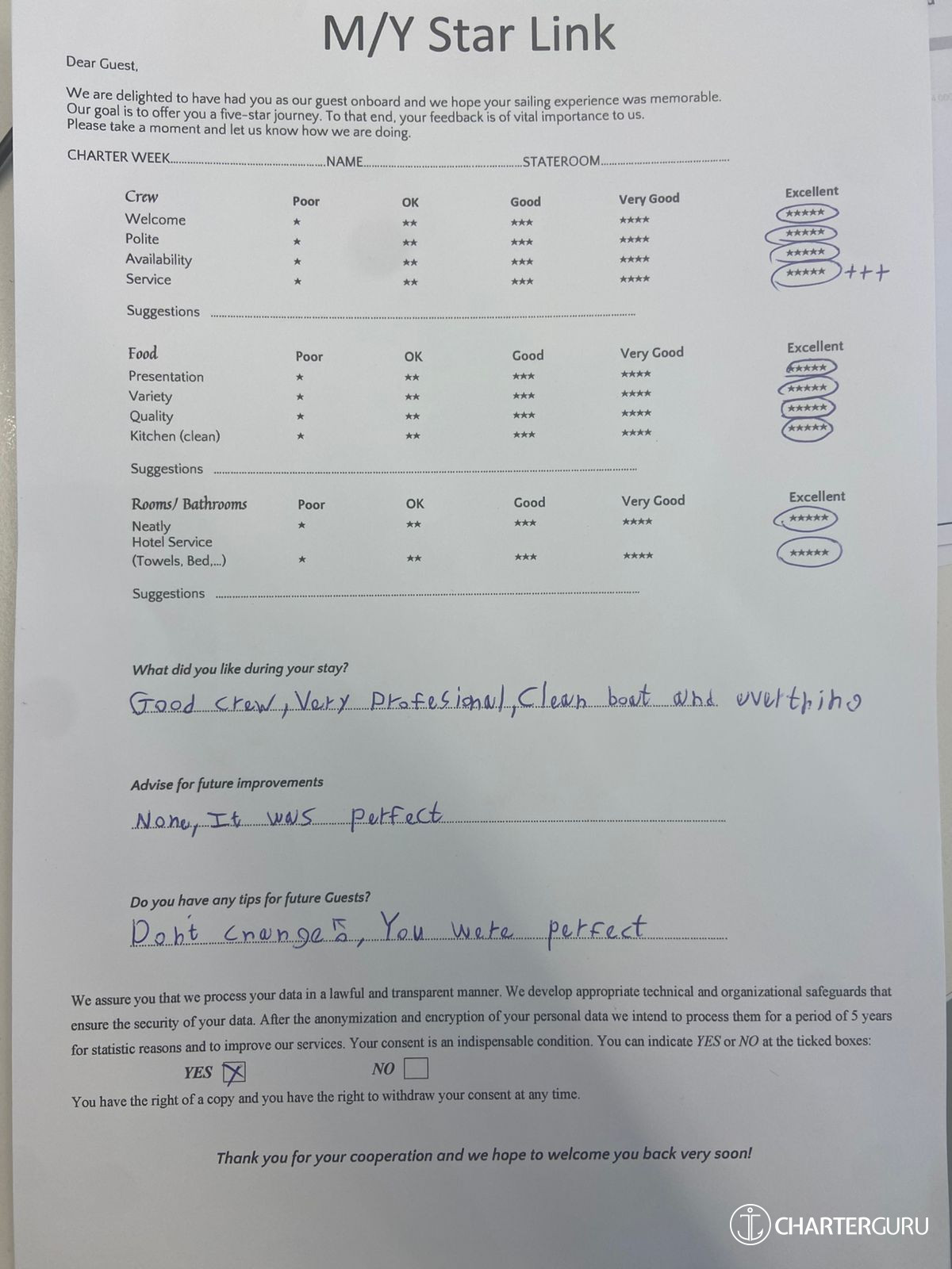 For a yacht like STAR LINK, the expected APA is not defined for this type of yacht. Exact amount will be confirmed after inquiry.