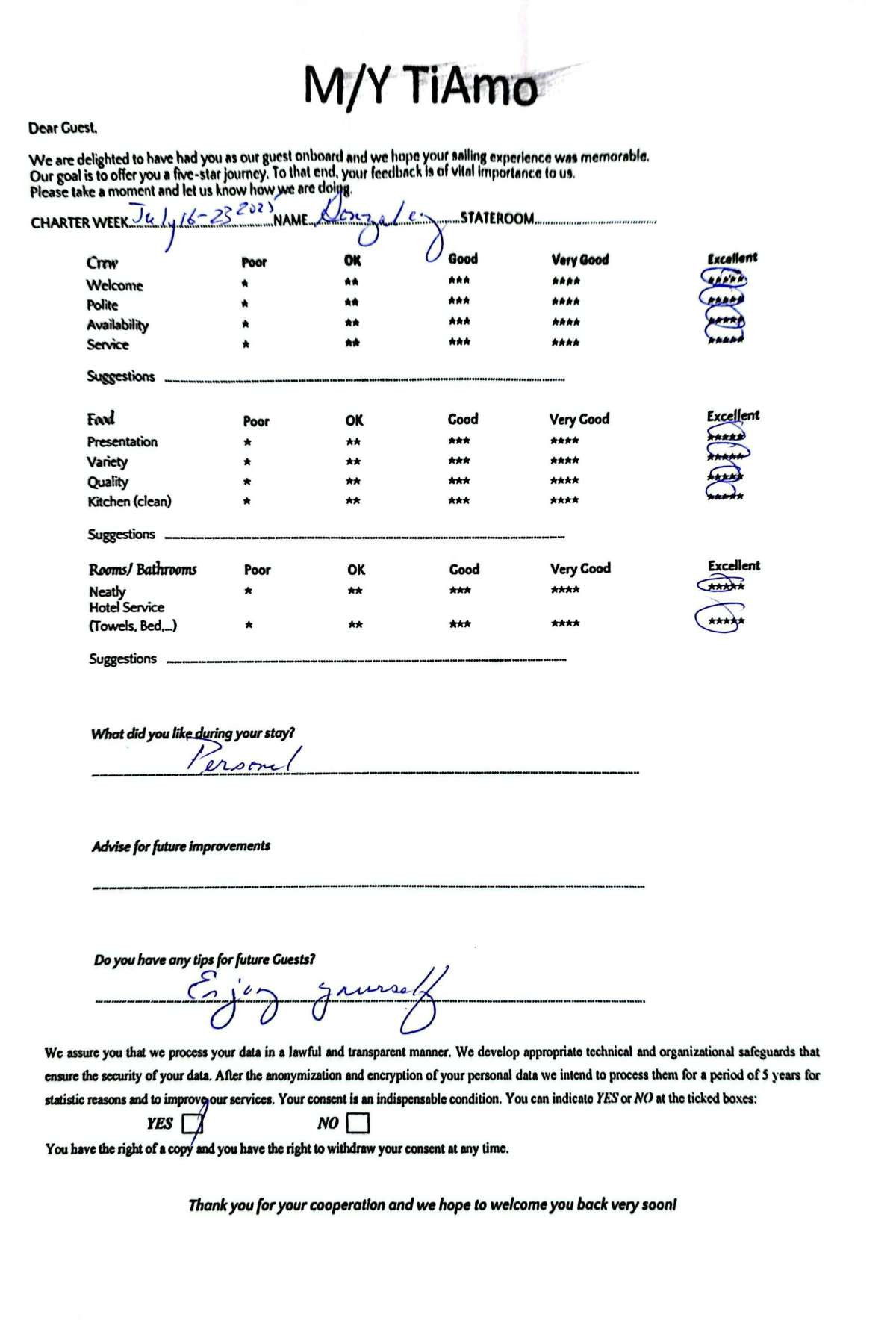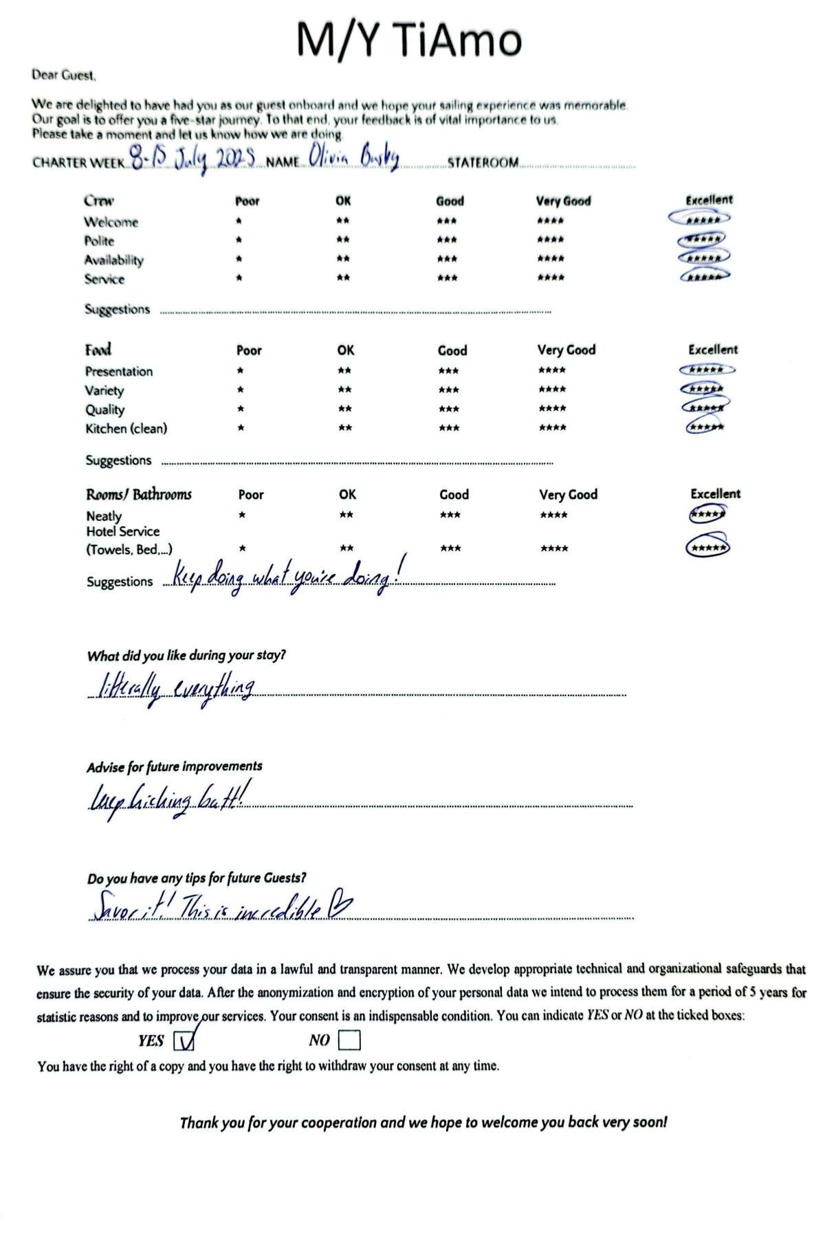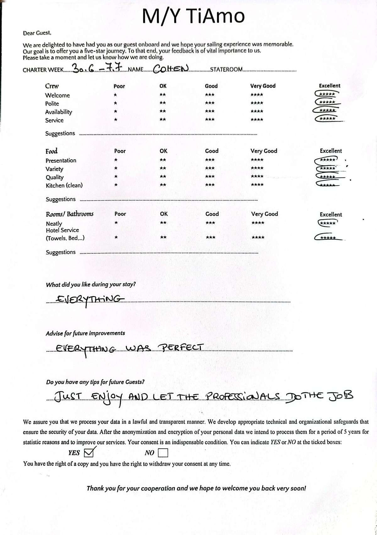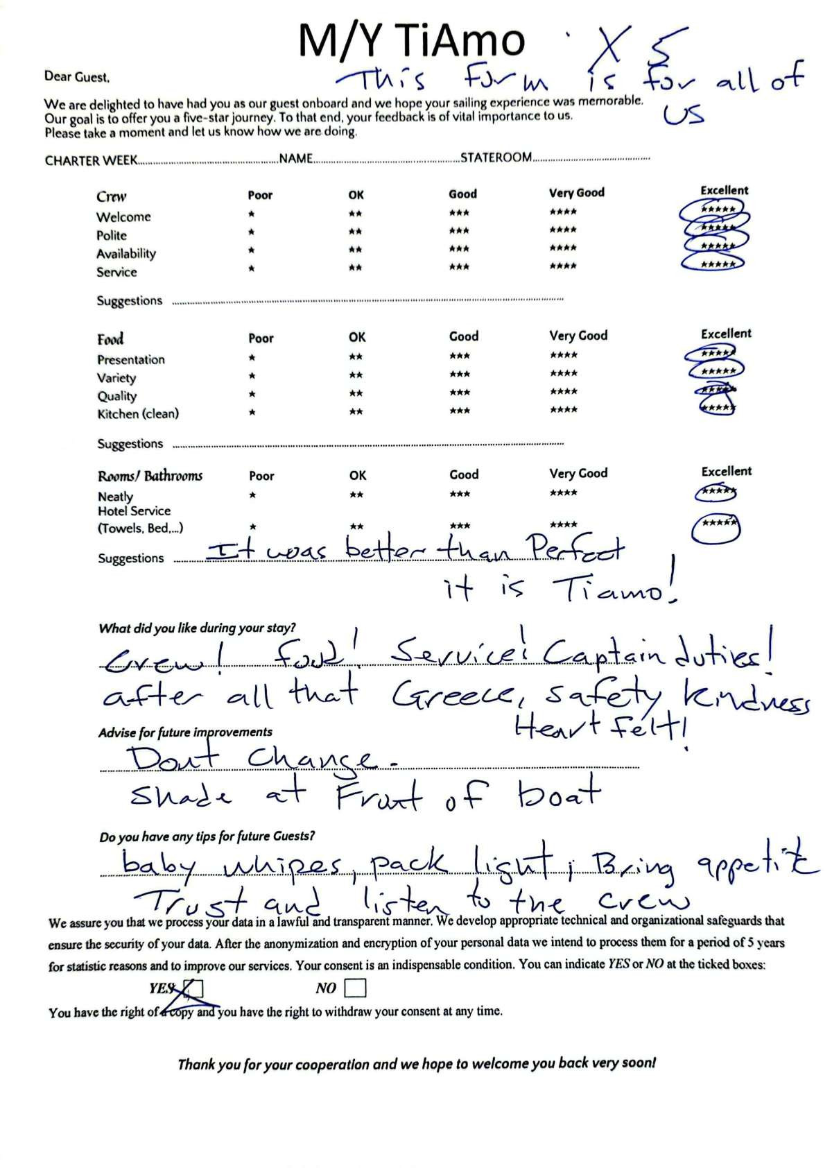 For a yacht like TiAmo, the expected APA is not defined for this type of yacht. Exact amount will be confirmed after inquiry.