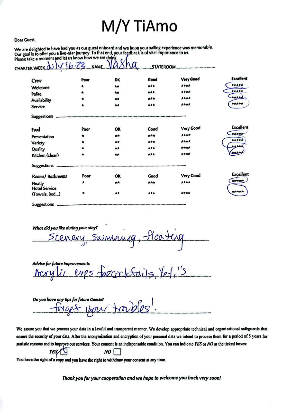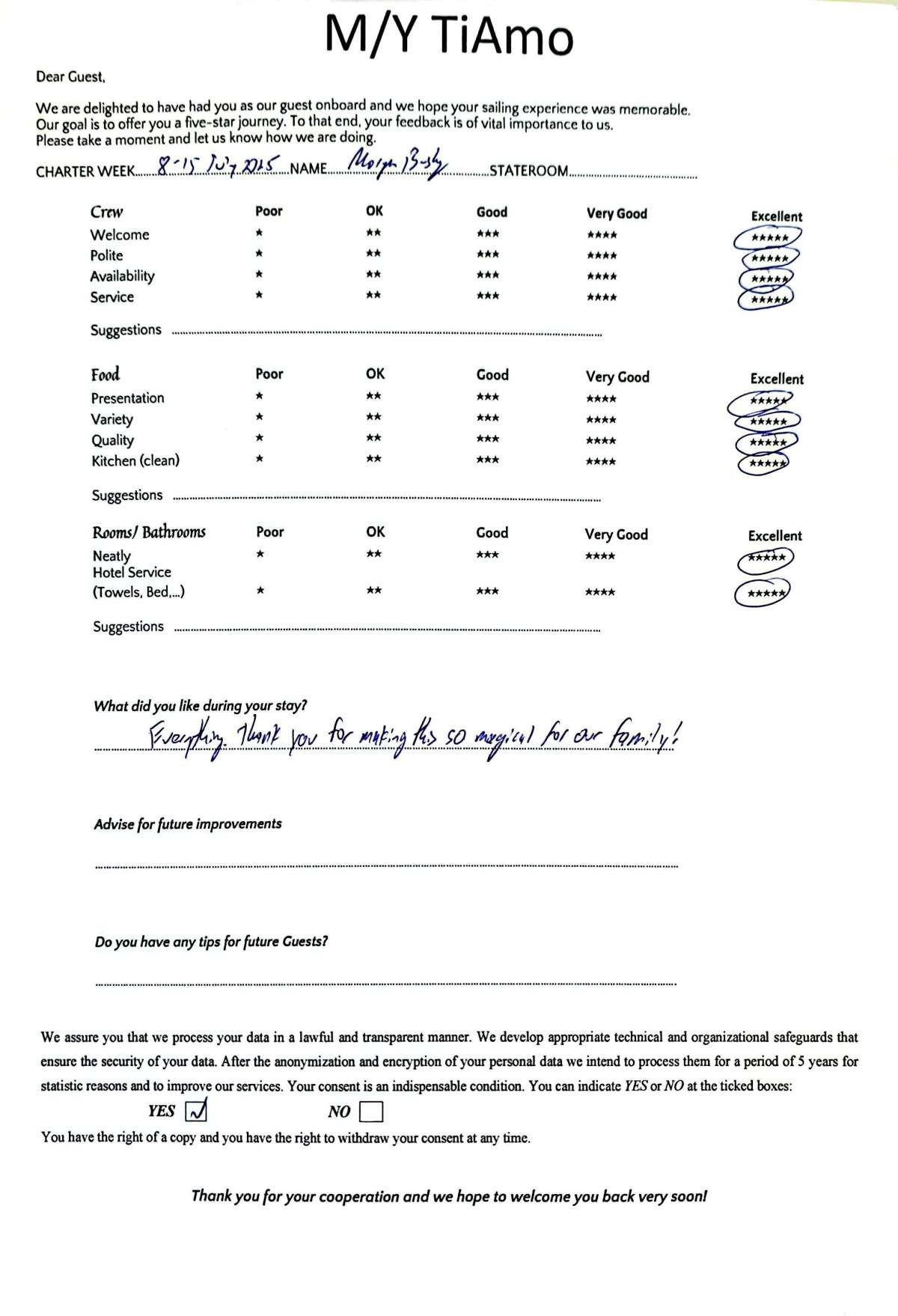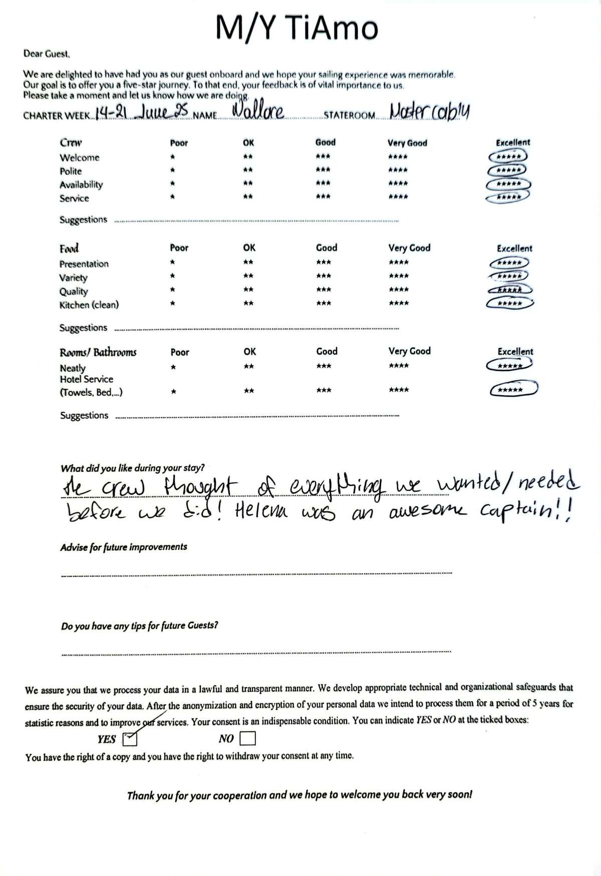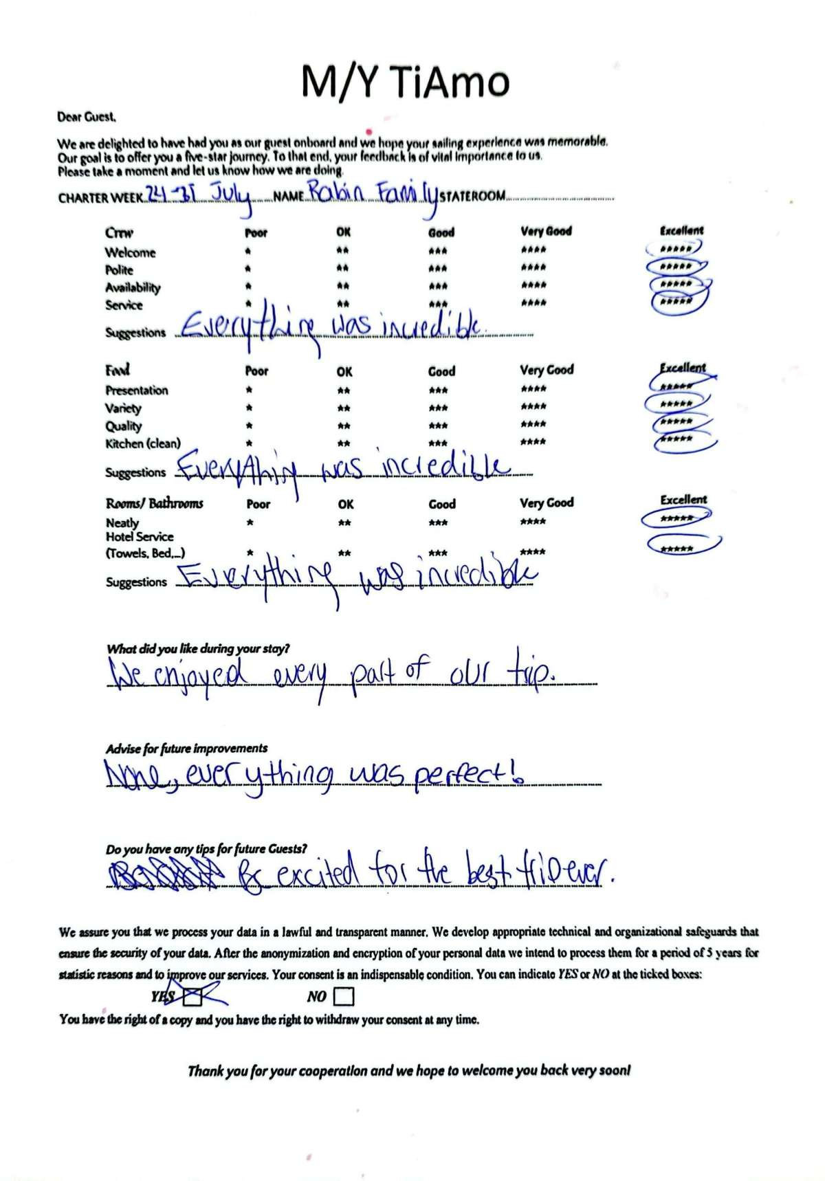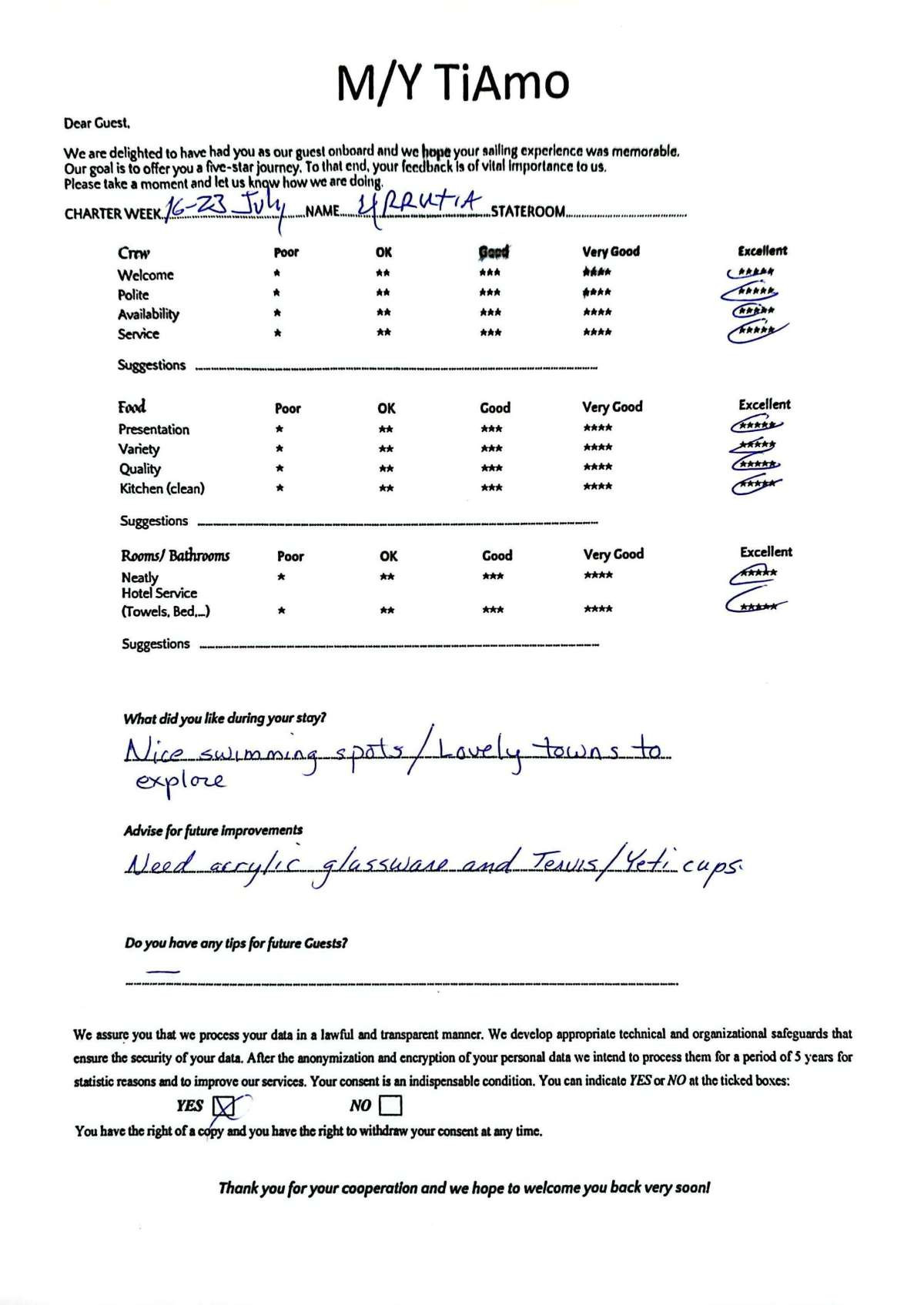 For a yacht like TiAmo, the expected APA is not defined for this type of yacht. Exact amount will be confirmed after inquiry.