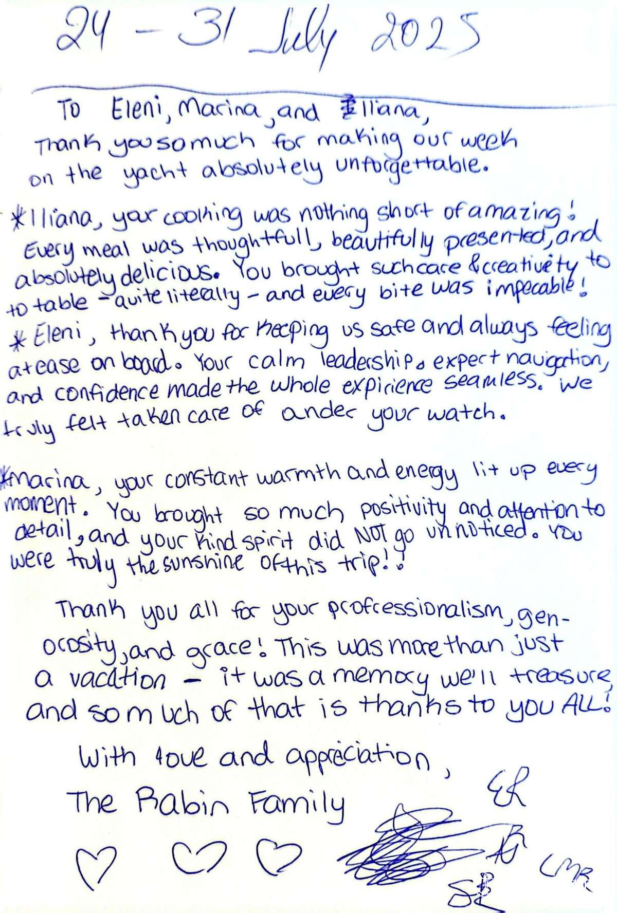Beyond her culinary expertise, Iliana is a seasoned barista and bartender, adding a delightful touch to the onboard experience. Fluent in English, she ensures seamless communication with guests from different backgrounds.