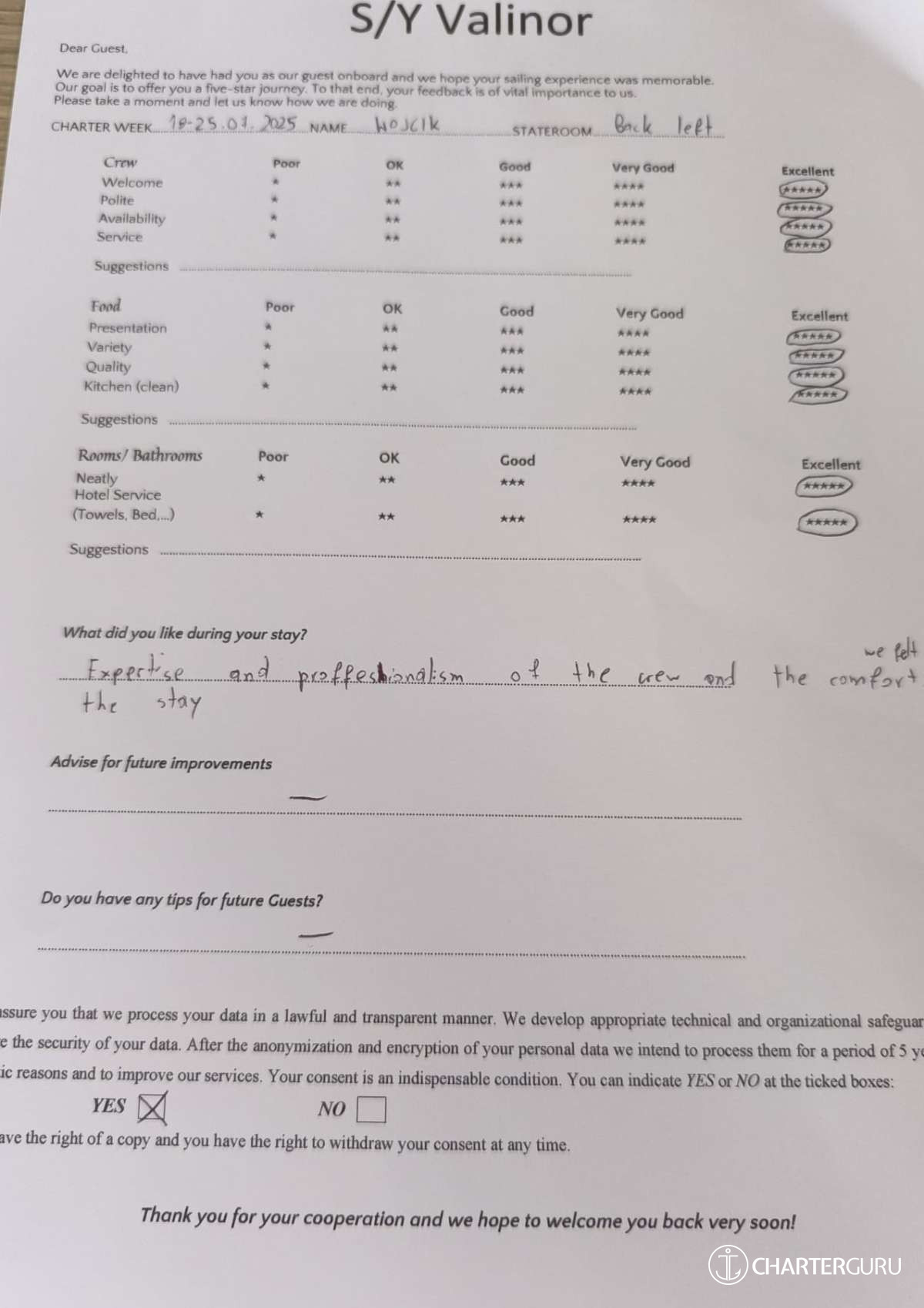 Inclusive charters are crewed charters with minimum or no additional charges. Provisioning, fuel and crew are included in the price. Additional fees may include diving, premium alcohol, local taxes, or onshore activities. These vary from yacht to yacht, please inquire.VALINOR (Mediterranean) Yacht Charter Price